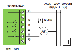 TC300系列液晶显示节能温控器 TC300采用微电脑控制技术,大屏幕液晶显示,液晶显示状态有:工作状态(制冷、制热、通风)、风机风速、室内温度、设置温度等。按键有:电源开关/风速调节键(